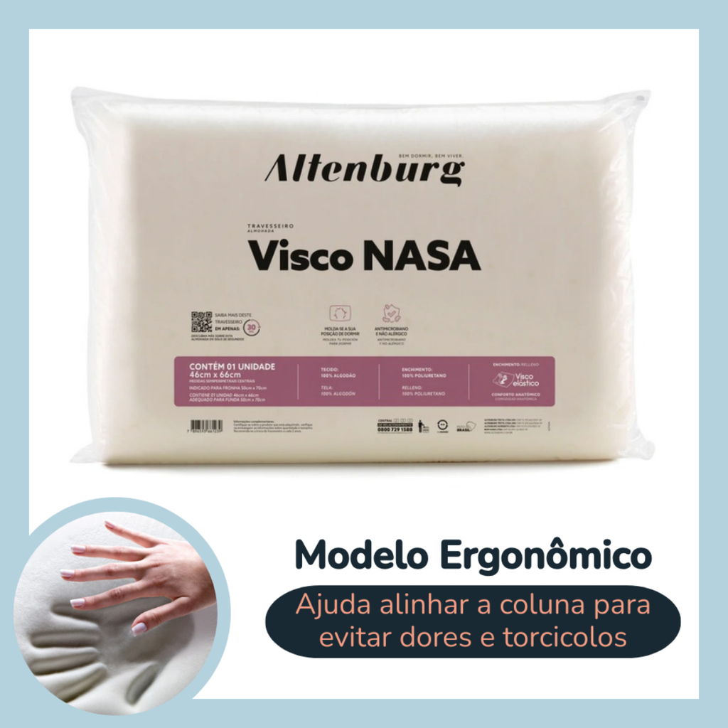 • Travesseiro Visco Nasa — Suporte Ergonômico, Conforto Personalizado e Noites Sem Dores!