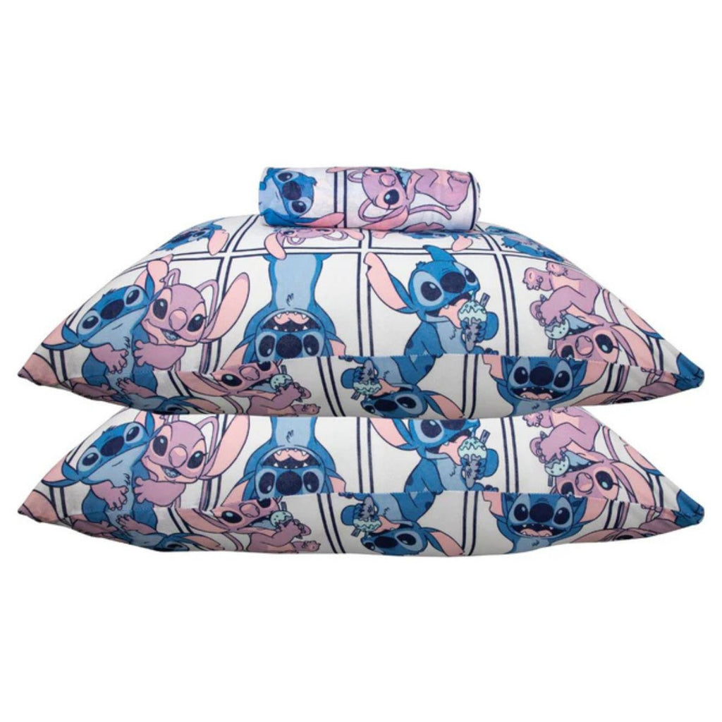 Jogo de Cama Casal Stitch Blue Quadros (3 Peças) — Malha Premium, Toque Macio e Aventura Divertida