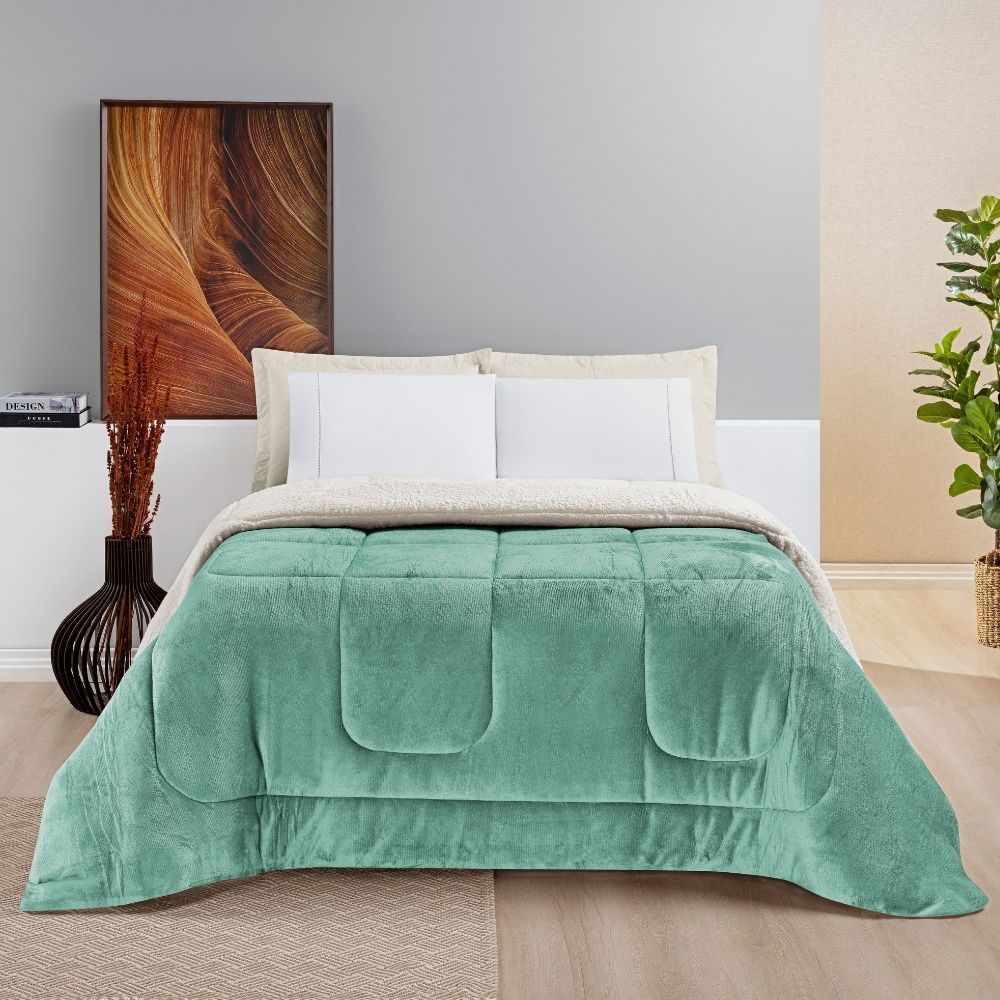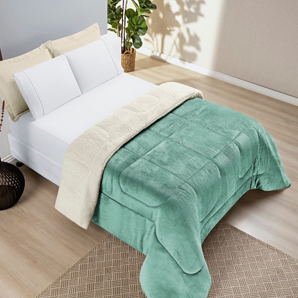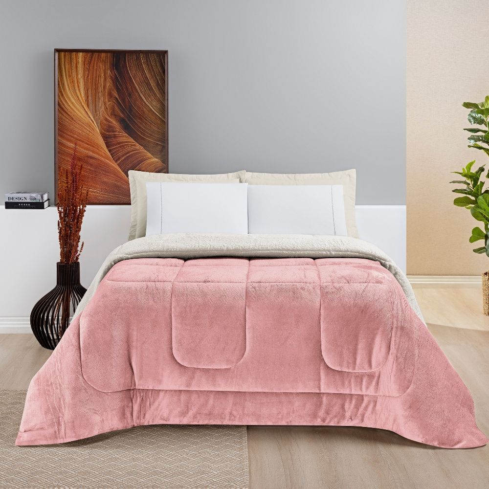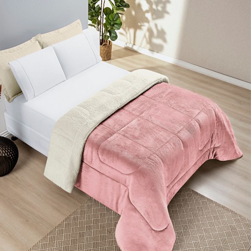 Coberdrom Queen Liso Dupla Face com Sherpa