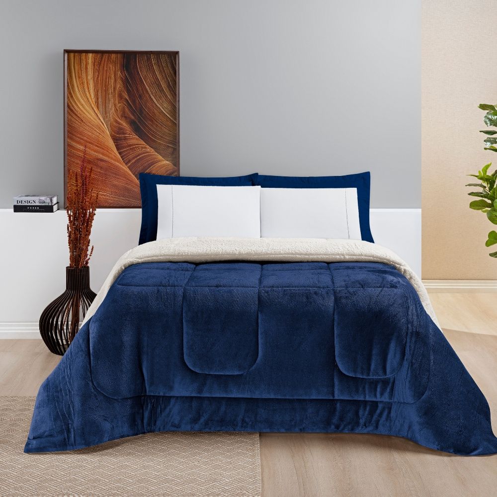 O Coberdrom Liso é a escolha ideal para quem busca máximo conforto térmico aliado a um visual sofisticado. Seu design clássico com delicados poás brancos traz elegância atemporal ao quarto, enquanto a combinação de tecidos garante aconchego absoluto nas noites mais frias.