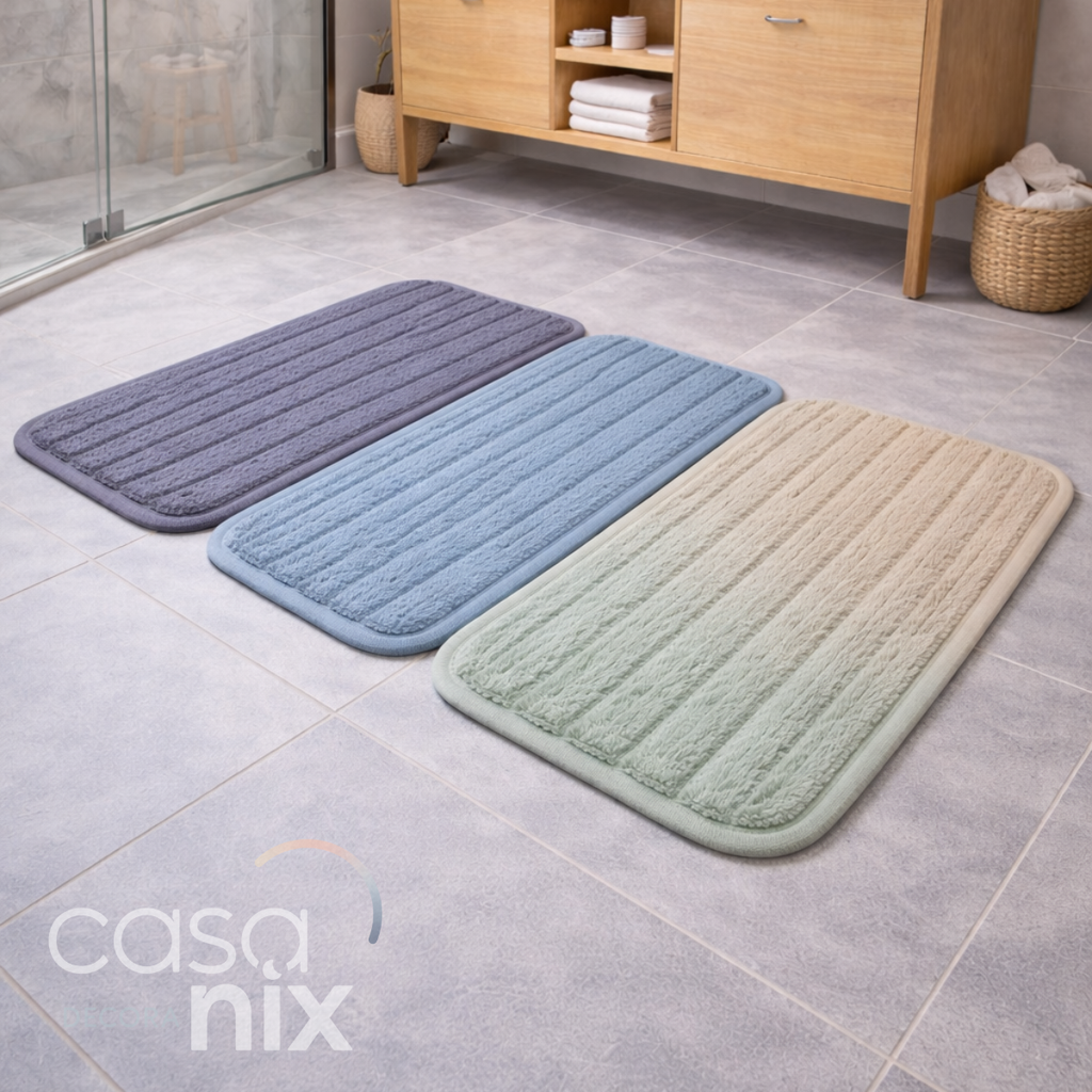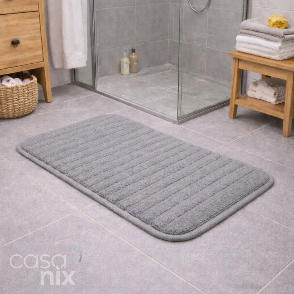 Com cores elegantes e design discreto, o tapete Relax se integra facilmente à decoração do banheiro, ajudando a criar um ambiente mais acolhedor, organizado e funcional.