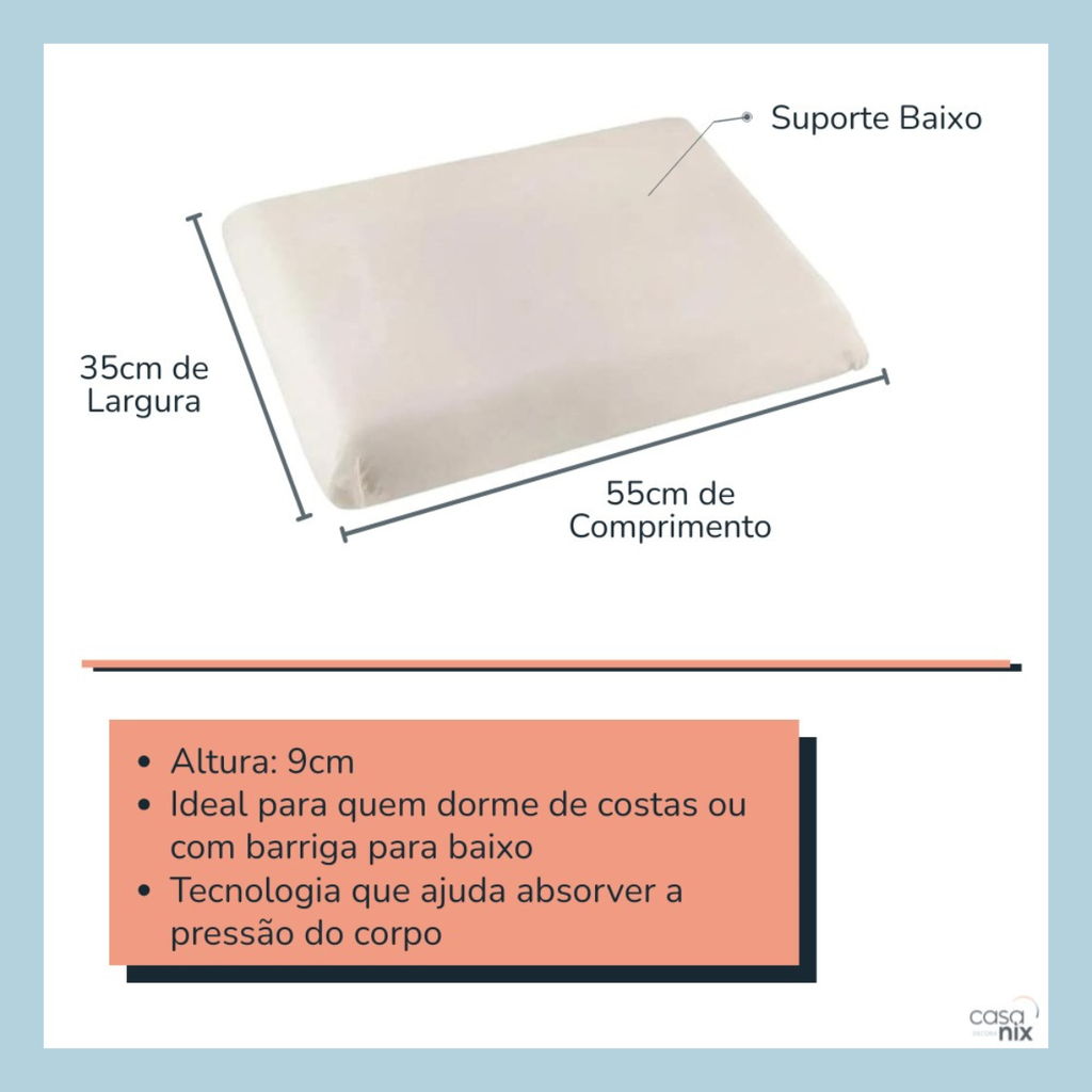 - Suporte que Não Achata: Graças à sua espuma de poliuretano com "efeito elástico", o travesseiro sempre retorna ao seu formato original, garantindo suporte contínuo e evitando o desconforto de travesseiros deformados.