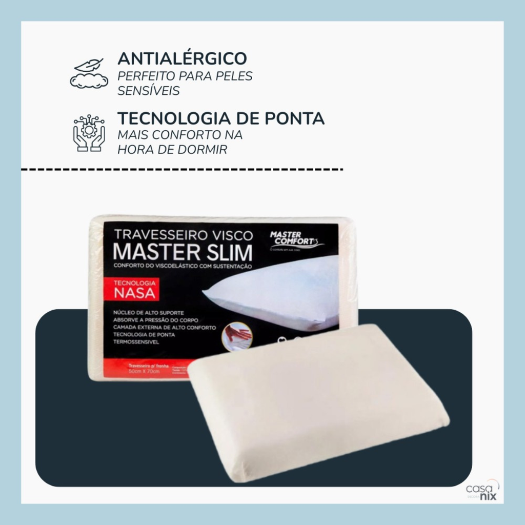 Travesseiro Viscoelástico Master Slim Confort Nasa — Adeus ao Desconforto, Olá ao Sono Perfeito!